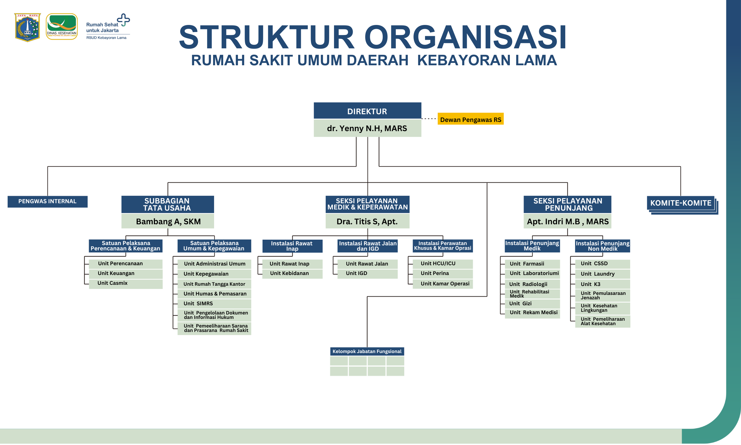 Berdasarkan Peraturan Gubernur Provinsi DKI Jakarta Nomor 114 Tahun 2021 Tentang Organisasi dan Tata Kerja Rumah Sakit Umum Daerah, RSUD Kebayoran Lama merupakan RSUD Kelas D, yang mempunyai Tugas dan Fungsi :